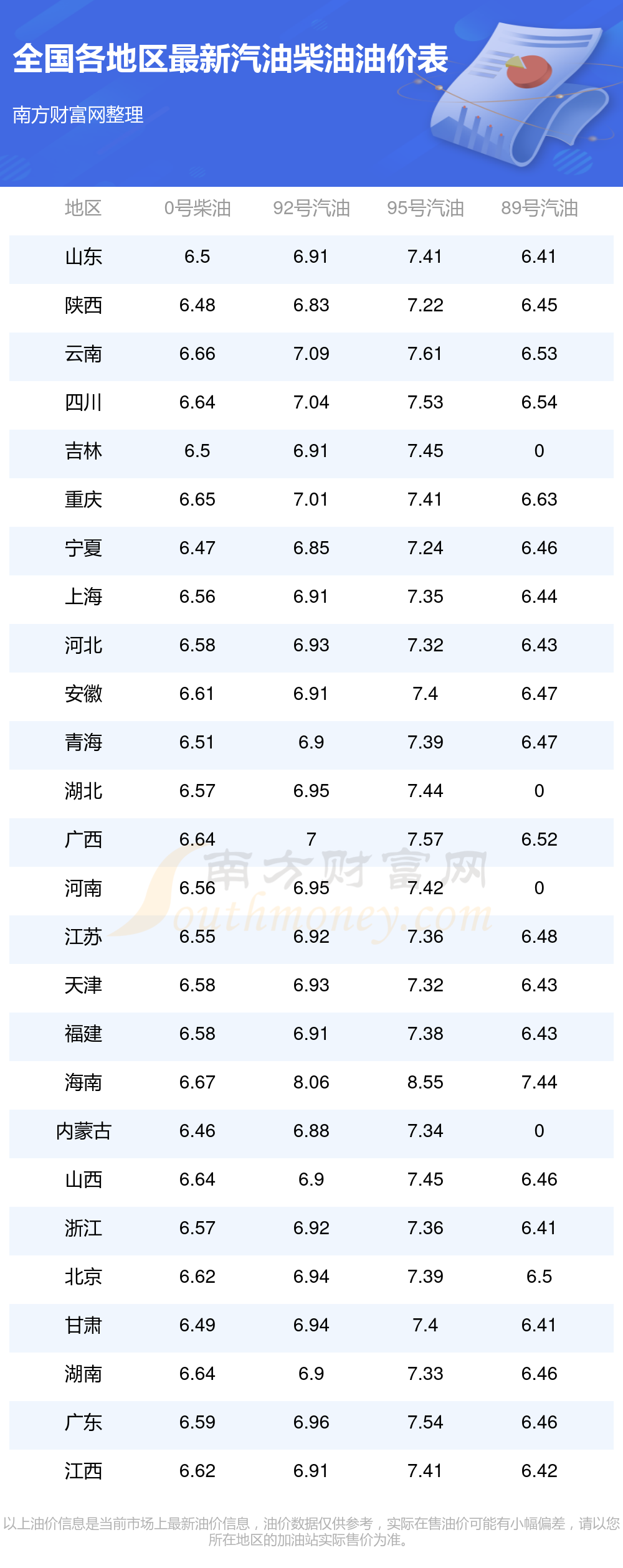 以上數(shù)據(jù)僅供參考,請以您所在地區(qū)的加油站實(shí)際售價為準(zhǔn)。南方財富網(wǎng)發(fā)布此信息的目的在于傳播更多信息,對使用該油價信息所導(dǎo)致的結(jié)果概不承擔(dān)責(zé)任。