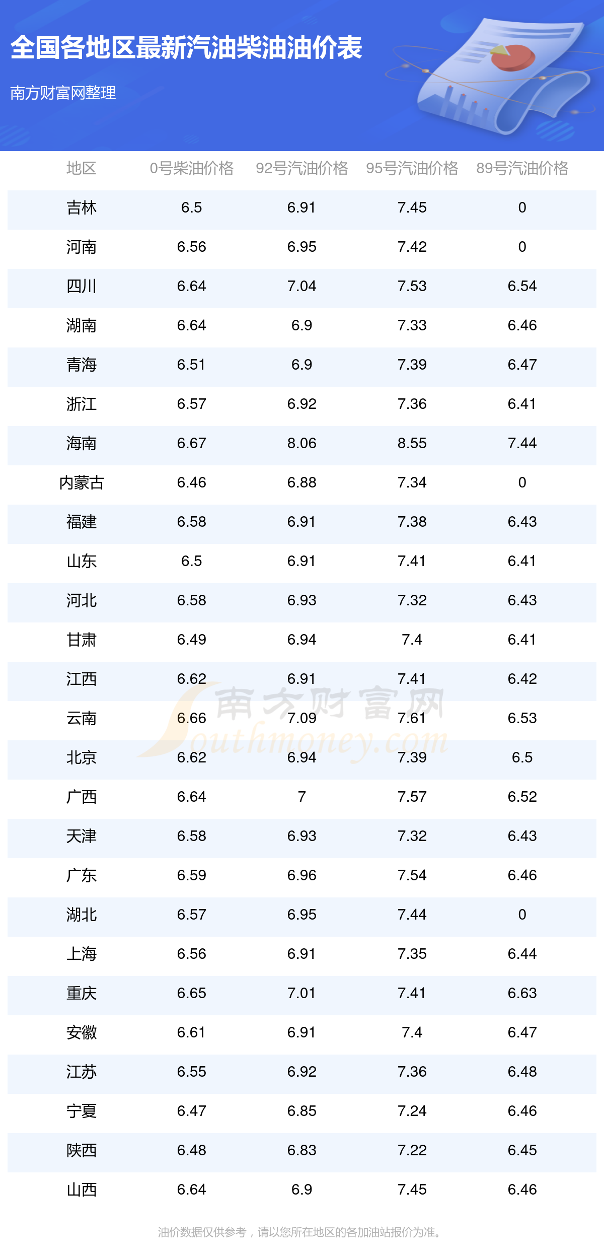 2025年11月11日全國油價調(diào)整及最新汽油價格表