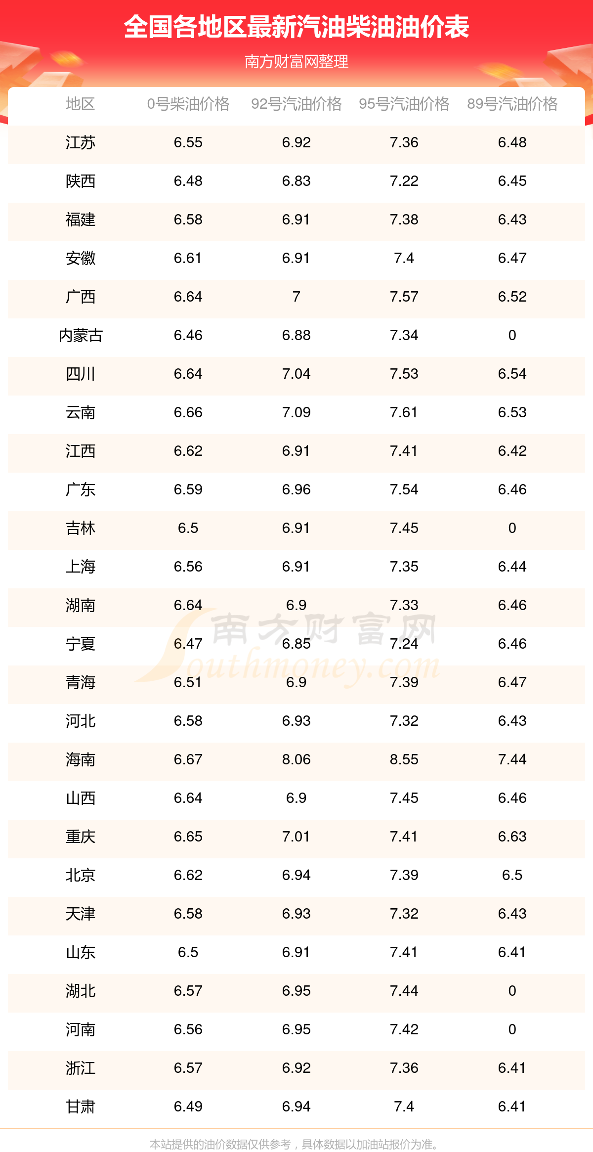 2025年11月11日全國油價調(diào)整及最新汽油價格表