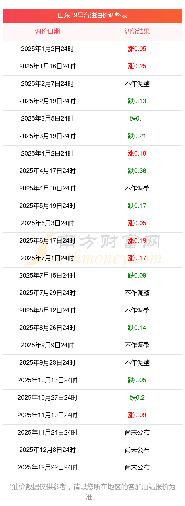 肥城2025年油價(jià)調(diào)整時(shí)間及最新價(jià)格表