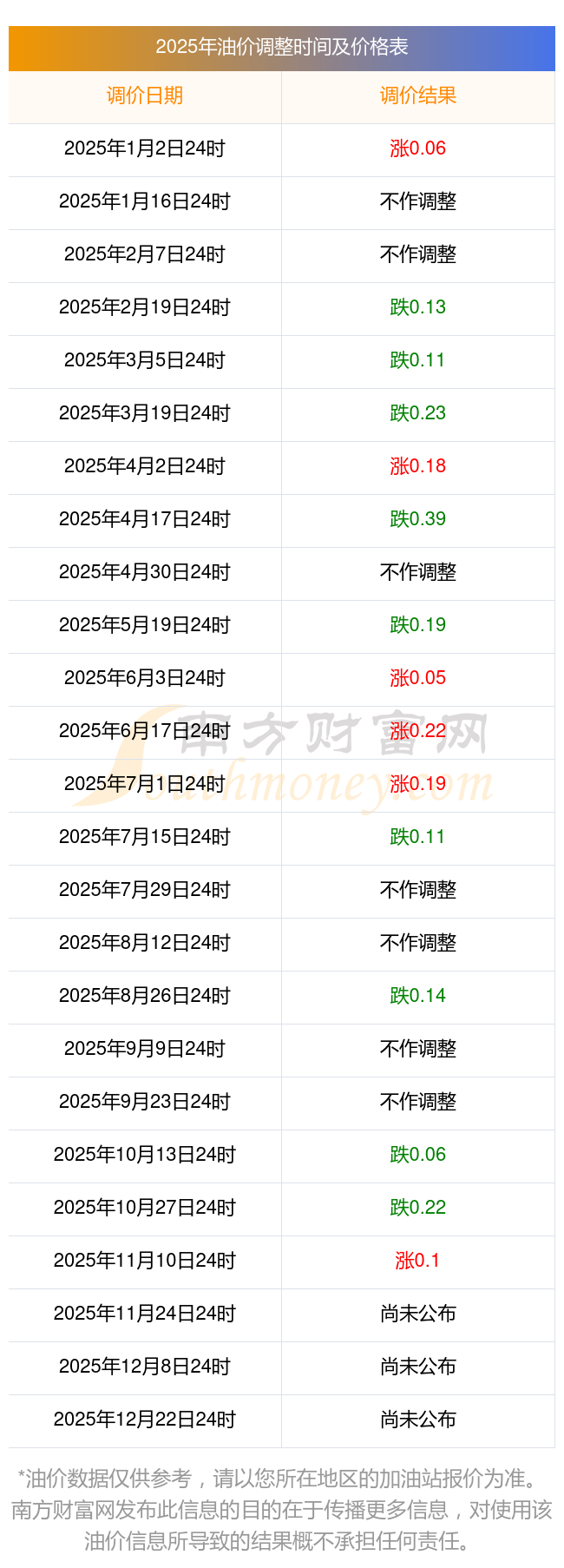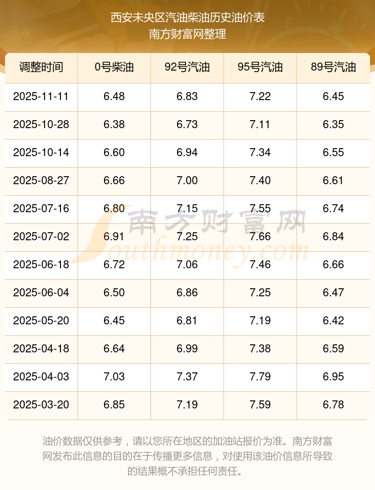 2025年西安未央?yún)^(qū)油價調(diào)整時間表