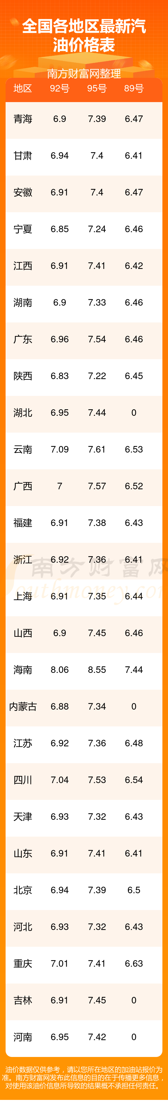 全國(guó)92號(hào)汽油平均價(jià)格為:7元每升,其中,最低為陜西,價(jià)格6.83元/升,最高為海南,價(jià)格8.06元/升。