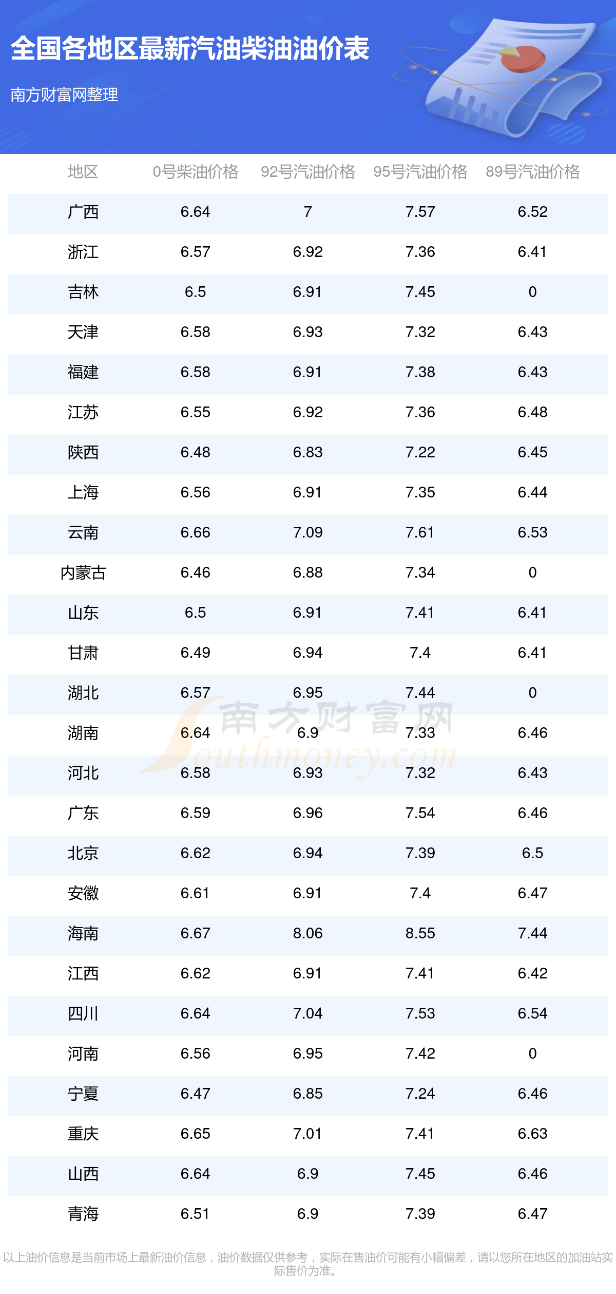 2025年11月12日全國(guó)油價(jià)調(diào)整及最新汽油價(jià)格表