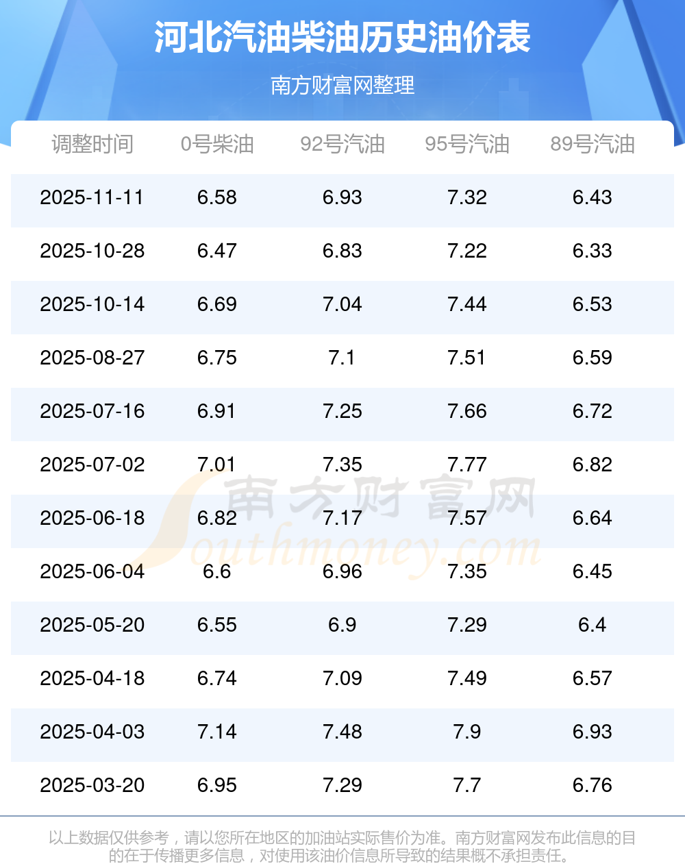 2025年河北汽油價(jià)格一覽表