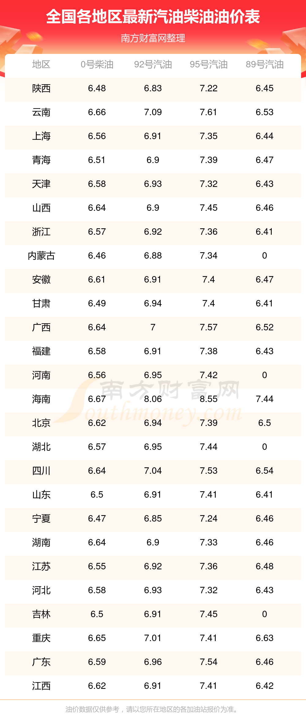全國(guó)92號(hào)汽油平均價(jià)格為:7元每升,其中,最低為陜西,價(jià)格6.83元/升,最高為海南,價(jià)格8.06元/升。