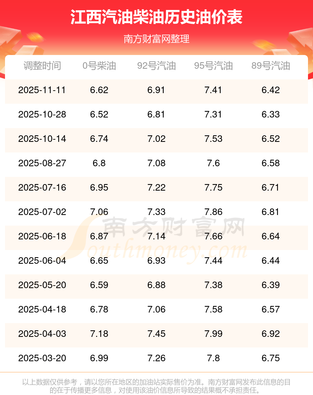2025年油價調(diào)價日期表一覽(2025-11-12)