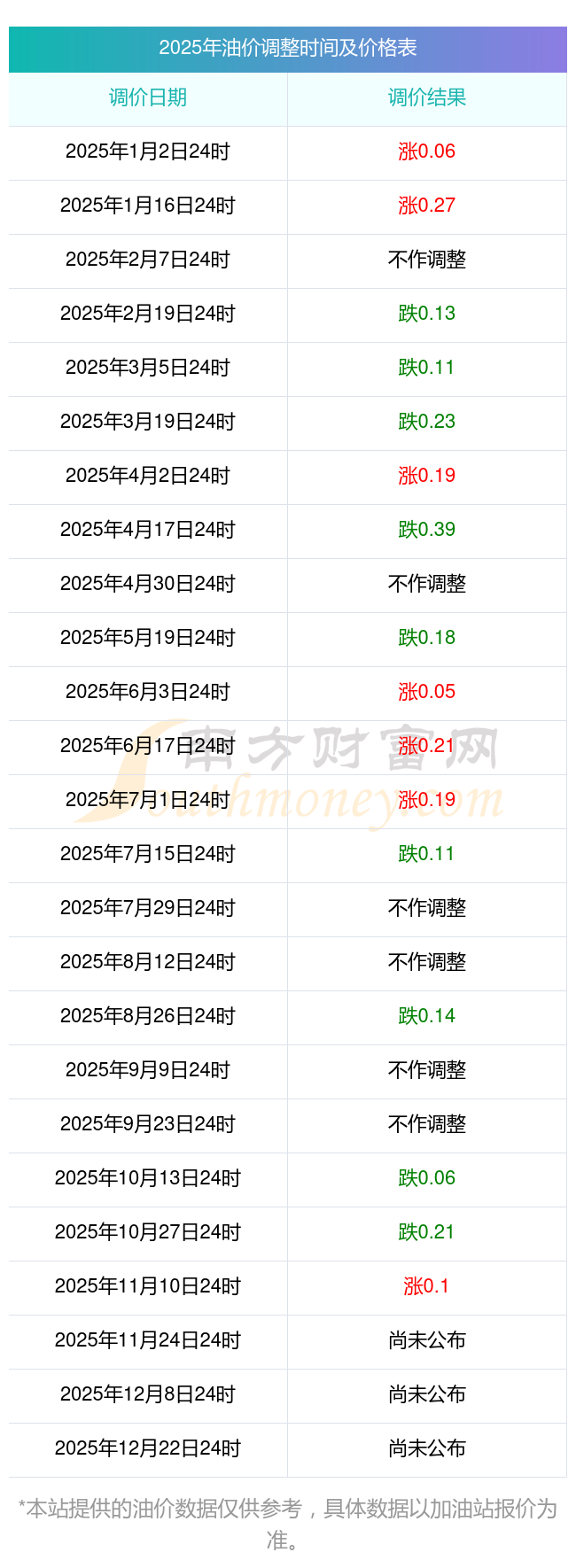 青島2025年汽油價(jià)格調(diào)整時(shí)間一覽表
