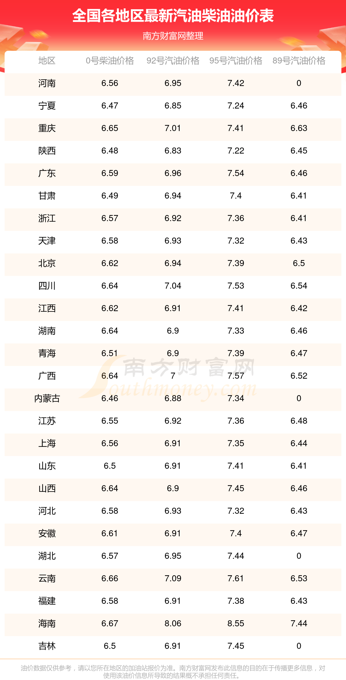油價(jià)數(shù)據(jù)僅供參考,請(qǐng)以您所在地區(qū)的各加油站報(bào)價(jià)為準(zhǔn)。