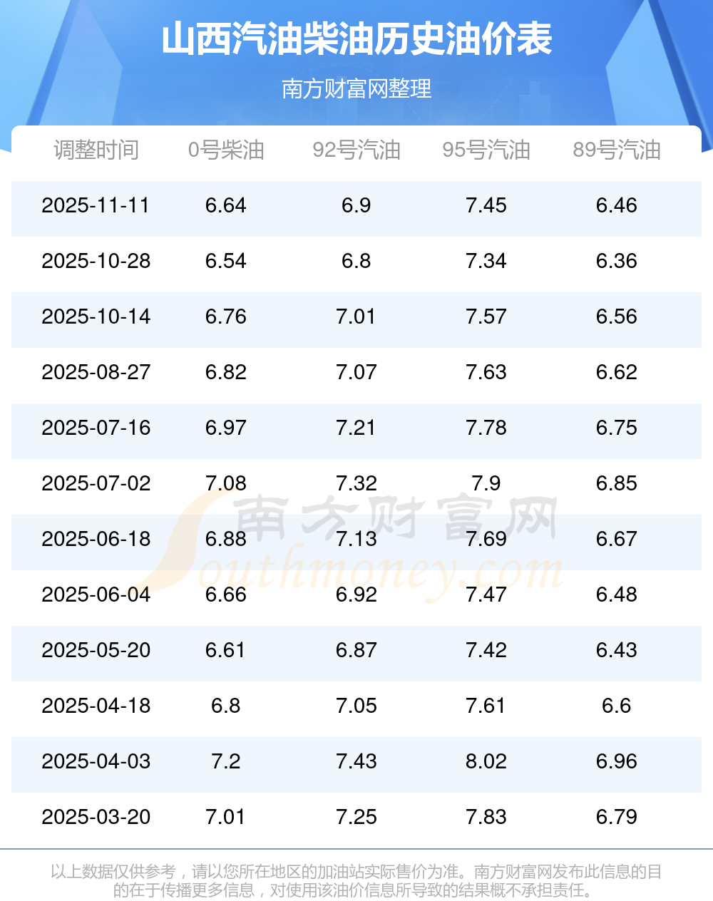 2025年山西汽油價(jià)格一覽表