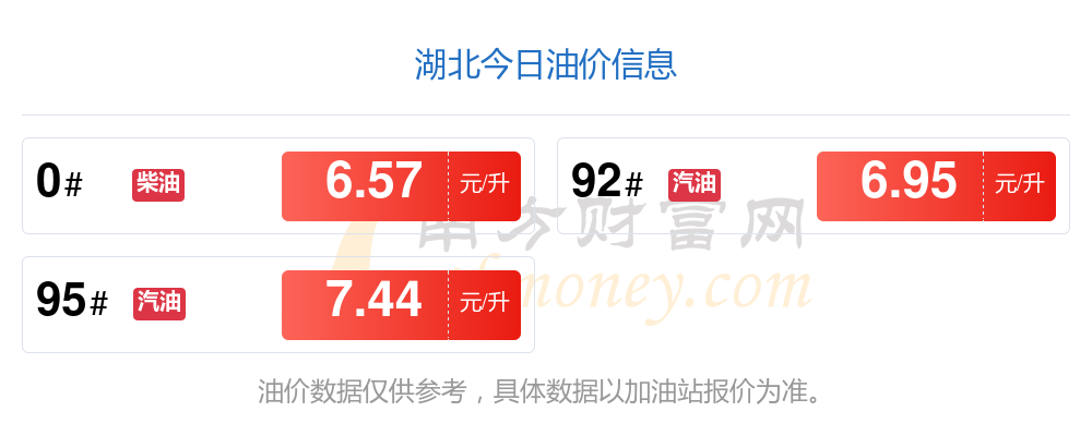 湖北應(yīng)城汽油、柴油11月12日每升的價(jià)格為11月11日調(diào)整后的價(jià)格,具體油價(jià)為:92號(hào)汽油6.95元;95號(hào)汽油7.44元;0號(hào)柴油6.57元。湖北應(yīng)城下一輪油價(jià)調(diào)整時(shí)間11月24日24時(shí),距離現(xiàn)在還有12.66天。