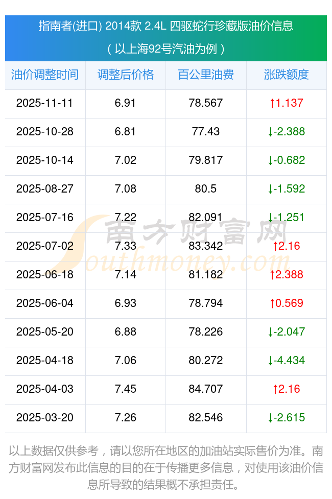依照11月11日92號汽油最新調(diào)整價格6.91元/升來計算(以上海為例),該車型百公里的平均油費是78.567元,依照上一輪10月28日調(diào)整價格6.81元/升來計算,百公里的平均油費是77.43元,對比上一輪多花1.137元,下一輪的油價調(diào)整時間11月24日24時。
