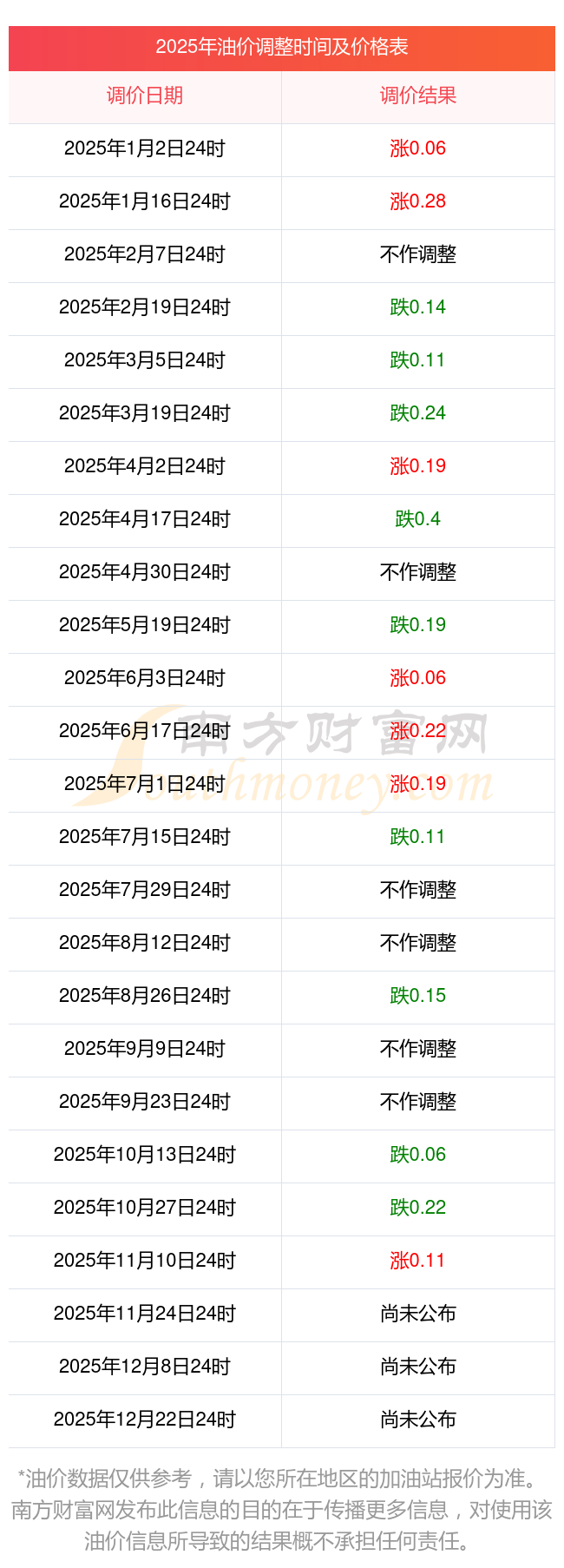 2025年西沙區(qū)11月12日油價(jià)調(diào)整時(shí)間表