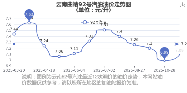 云南曲靖最近調(diào)價(jià)的油價(jià)走勢(shì)圖