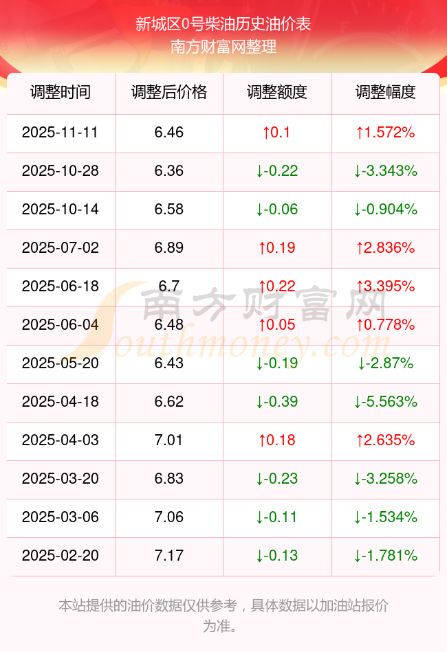 新城區(qū)0號柴油歷史油價一覽表