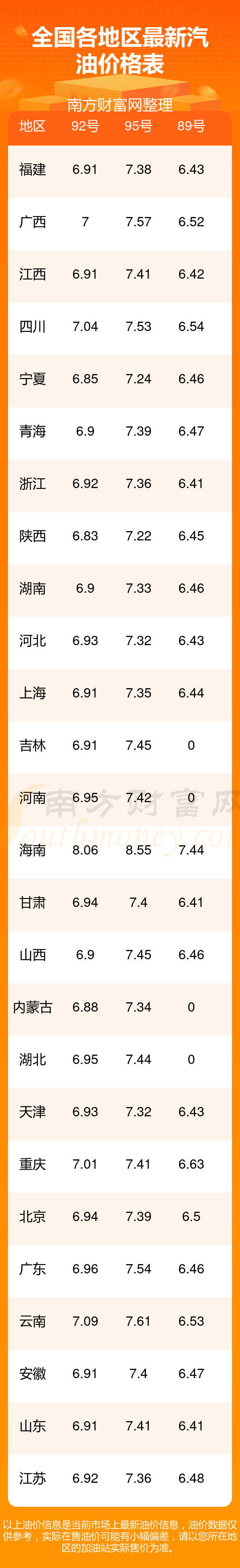 全國(guó)各地區(qū)2025年最新汽油價(jià)格表