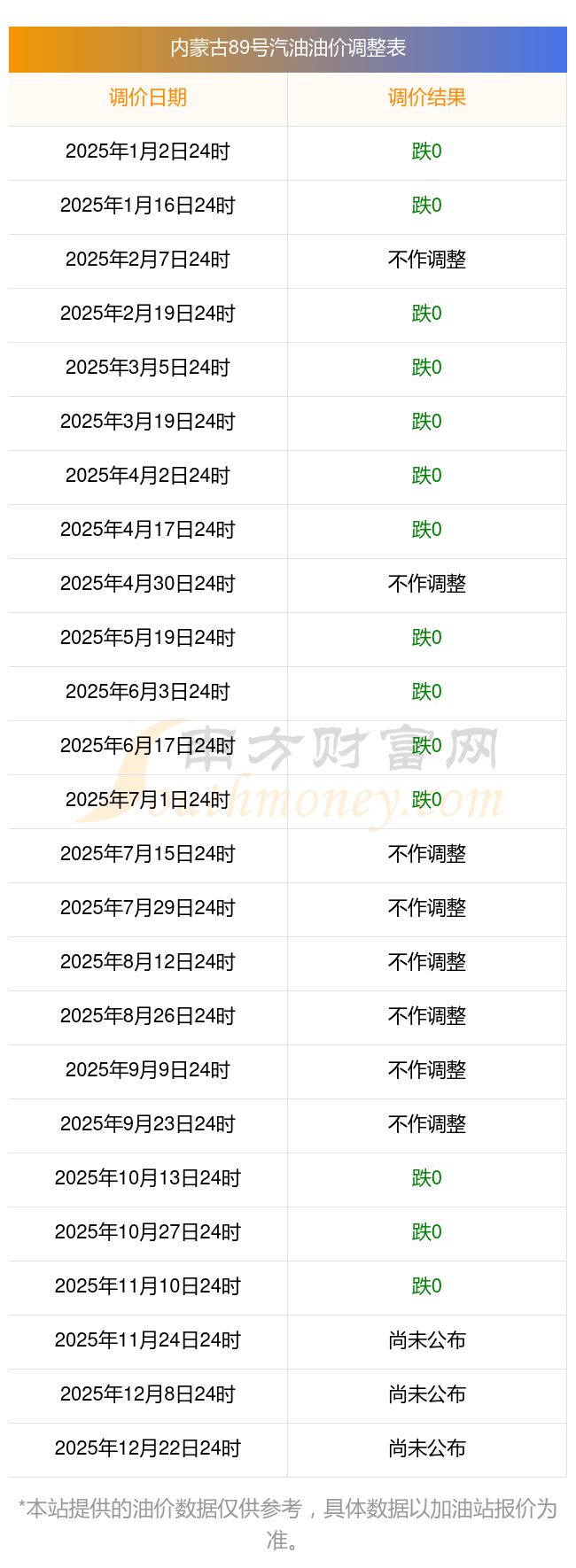 2025年呼和浩特油價(jià)調(diào)整日歷時(shí)間表