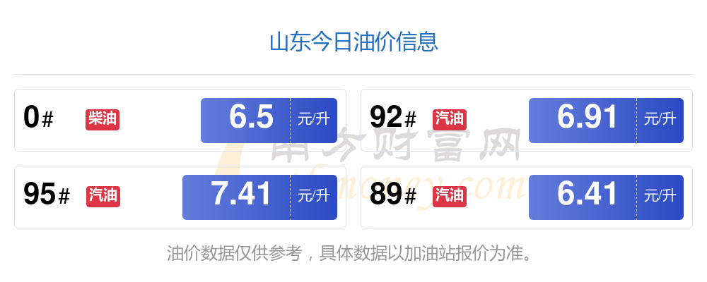 油價(jià)數(shù)據(jù)僅供參考,請(qǐng)以您所在地區(qū)的加油站報(bào)價(jià)為準(zhǔn)。南方財(cái)富網(wǎng)發(fā)布此信息的目的在于傳播更多信息,對(duì)使用該油價(jià)信息所導(dǎo)致的結(jié)果概不承擔(dān)任何責(zé)任。