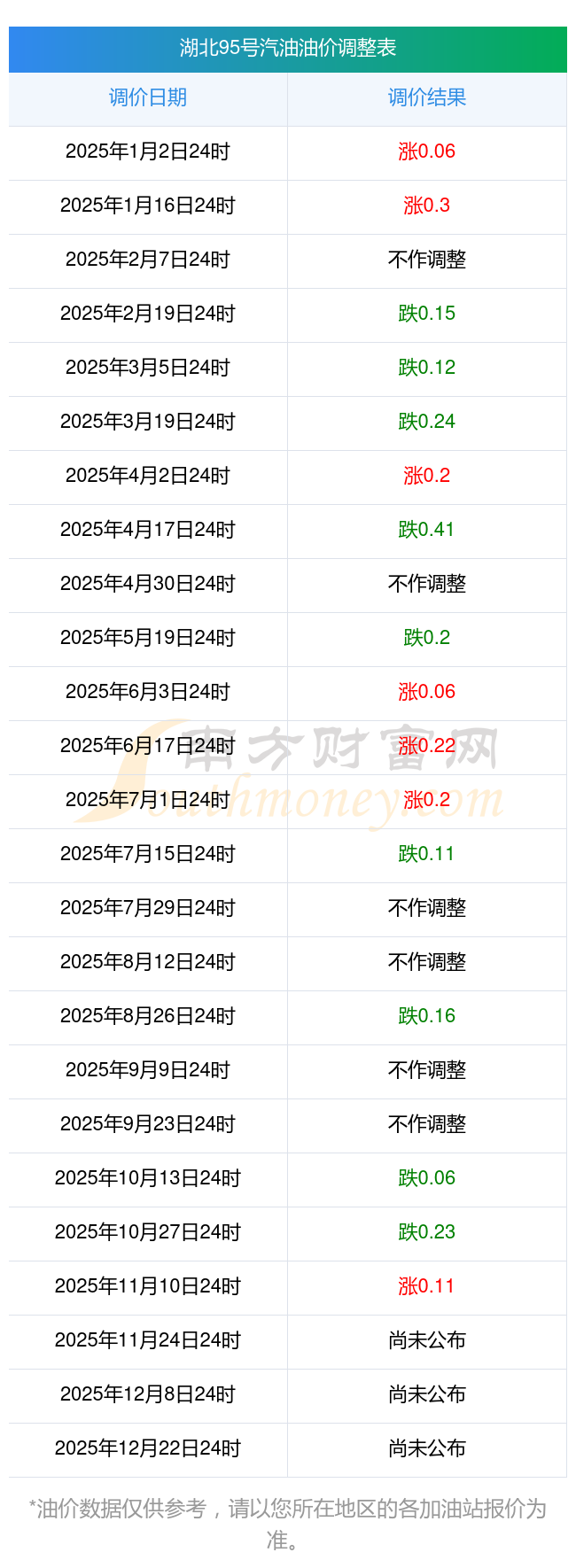 鄂州汽油、柴油11月12日價格多少錢一升?具體為:0號柴油為6.57元,漲了0.1元;95號汽油為7.44元;92號汽油為6.95元;,調(diào)整時間為11月11日。鄂州下一輪油價調(diào)整時間11月24日24時,距離現(xiàn)在還有12.58天。