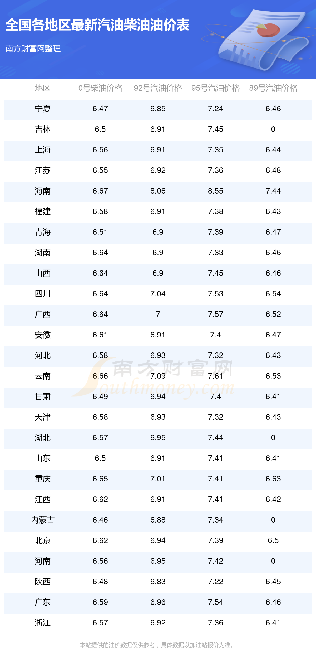 2025年11月12日全國(guó)油價(jià)調(diào)整及最新汽油價(jià)格表