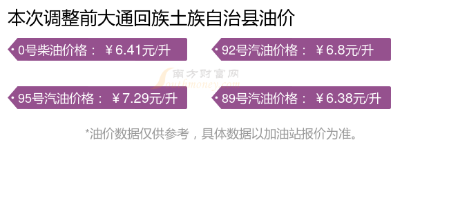 大通回族土族自治縣11月12日油價調(diào)整時間及價格表