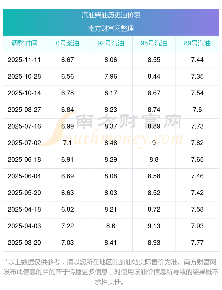 11月12日海南三亞95號汽油的價格為8.55元每升,本次調整時間為11月11日,相對上次調整時間10月28日的油價8.44元每升,升了0.11元,升幅達1.303%。下一輪油價調整時間11月24日24時,距離現(xiàn)在還有12.55天。