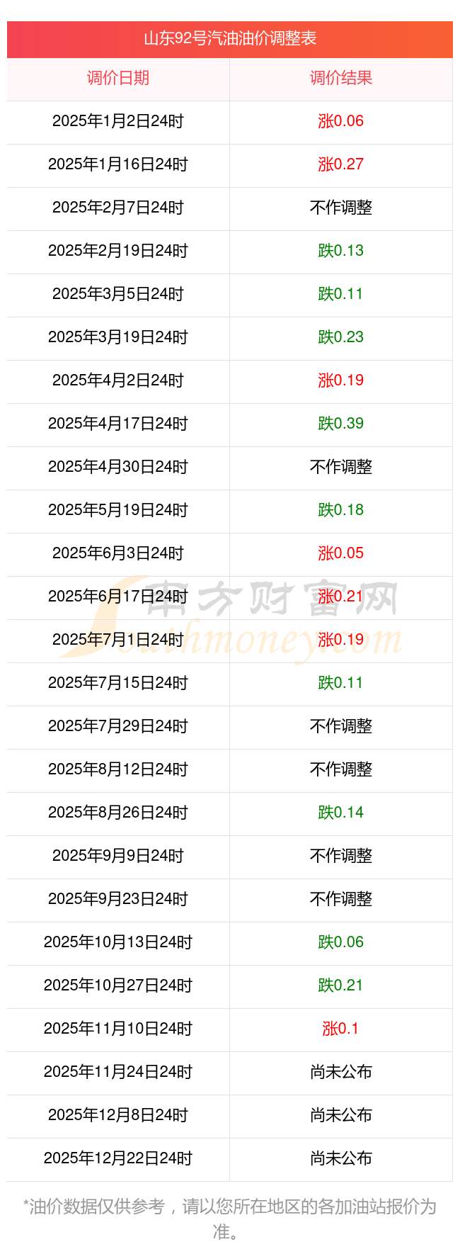 菏澤2025年油價(jià)調(diào)整時(shí)間及價(jià)格表