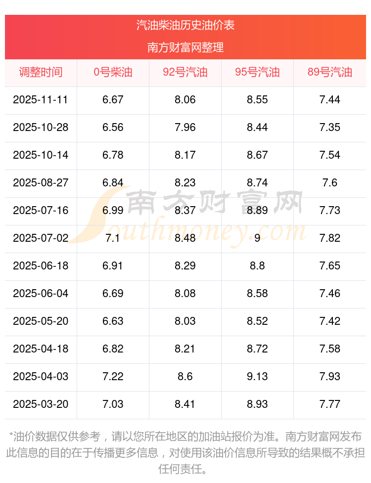11月油價(jià)調(diào)整時(shí)間:11月10日、11月24日