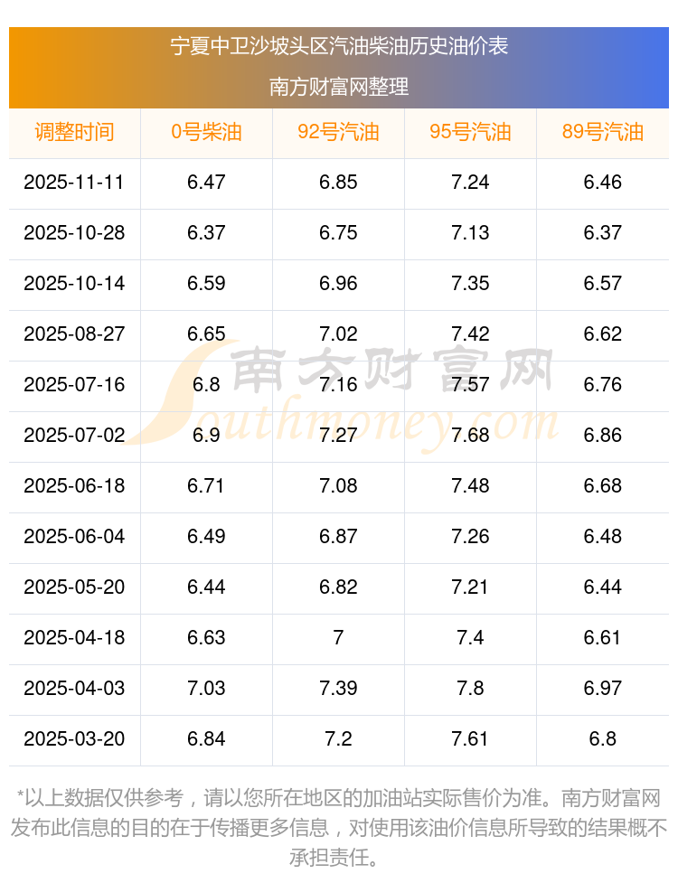 2025年寧夏中衛(wèi)沙坡頭區(qū)汽油價(jià)格一覽表