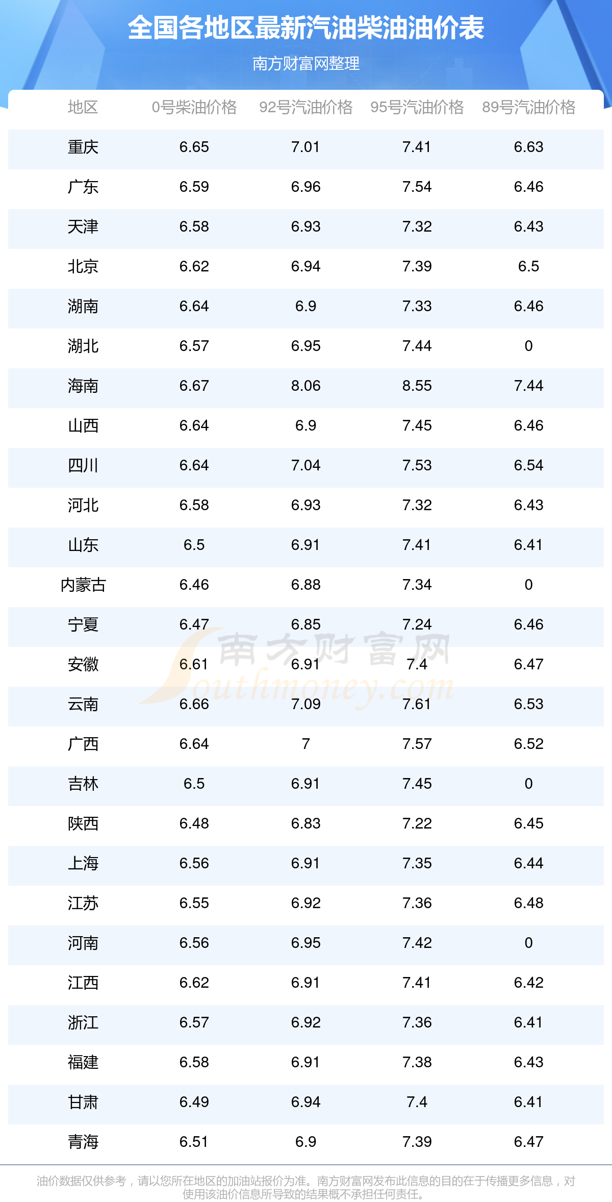 油價數(shù)據(jù)僅供參考,請以您所在地區(qū)的加油站報價為準(zhǔn)。南方財富網(wǎng)發(fā)布此信息的目的在于傳播更多信息,對使用該油價信息所導(dǎo)致的結(jié)果概不承擔(dān)任何責(zé)任。