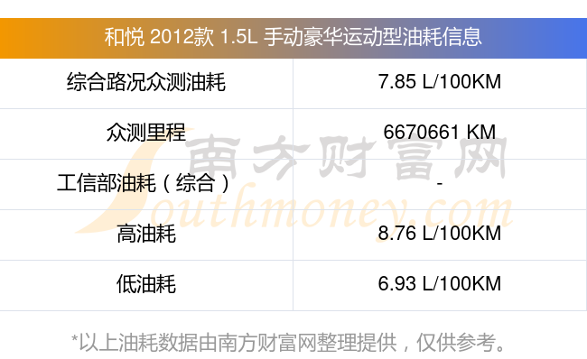 根據(jù)車主實測數(shù)據(jù),該車型低油耗為6.93L/100km,高油耗為8.76L/100km,綜合路況眾測油耗為7.85L/100km,工信部綜合油耗為-L/100km。