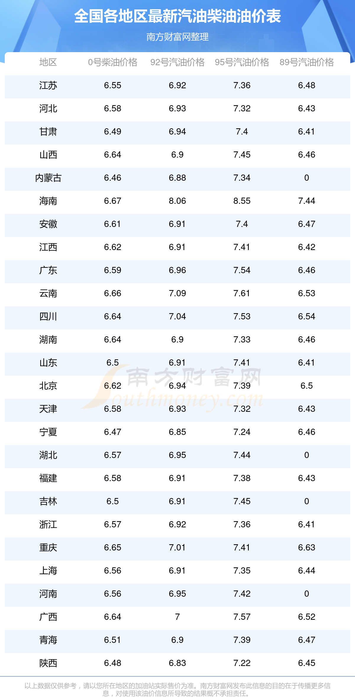 本站提供的油價數(shù)據(jù)僅供參考,具體數(shù)據(jù)以加油站報價為準(zhǔn)。