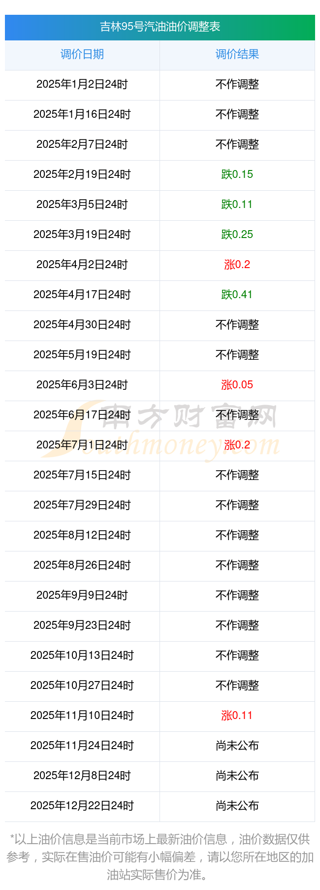 本輪油價的調(diào)整時間為11月11日,調(diào)整后全國92號汽油平均價格為7元每升,其中,最低為陜西的6.83元/升,最高為海南的8.06元/升。全國95號汽油平均價格為7元每升,其中,最低為陜西的7.22元/升,最高為海南的8.55元/升。全國0號柴油平均價格為:7元每升,其中,最低為內(nèi)蒙古的6.46元/升,最高為海南的6.67元/升。全國89號汽油平均價格為7元每升,其中,最低為浙江的6.41元/升,最高為海南的7.44元/升。下一輪油價調(diào)整時間11月24日24時,距離現(xiàn)在還有12.53天。