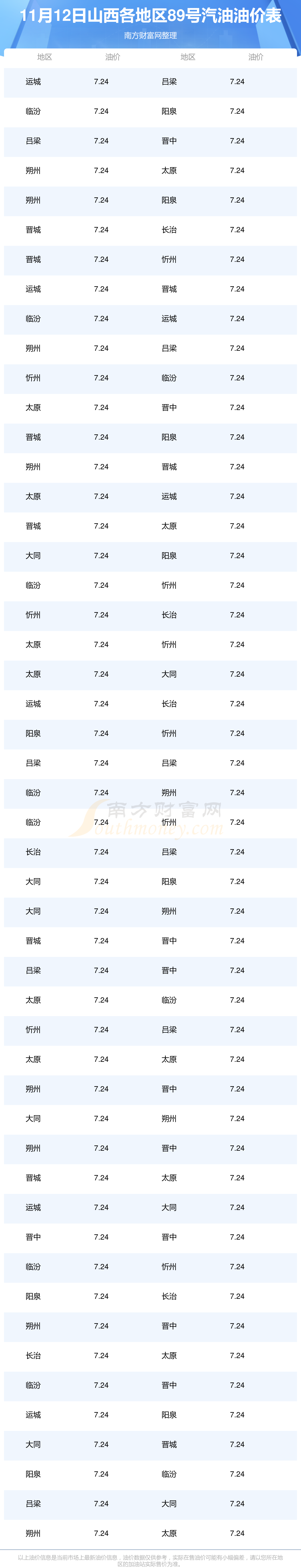 2025年11月12日山西89號(hào)汽油最新價(jià)格一覽表