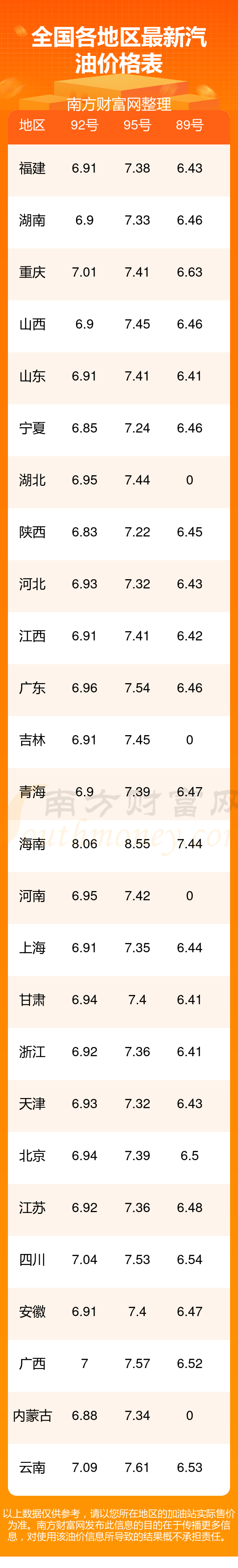 以上油價(jià)信息是當(dāng)前市場(chǎng)上最新油價(jià)信息,油價(jià)數(shù)據(jù)僅供參考,實(shí)際在售油價(jià)可能有小幅偏差,請(qǐng)以您所在地區(qū)的加油站實(shí)際售價(jià)為準(zhǔn)。