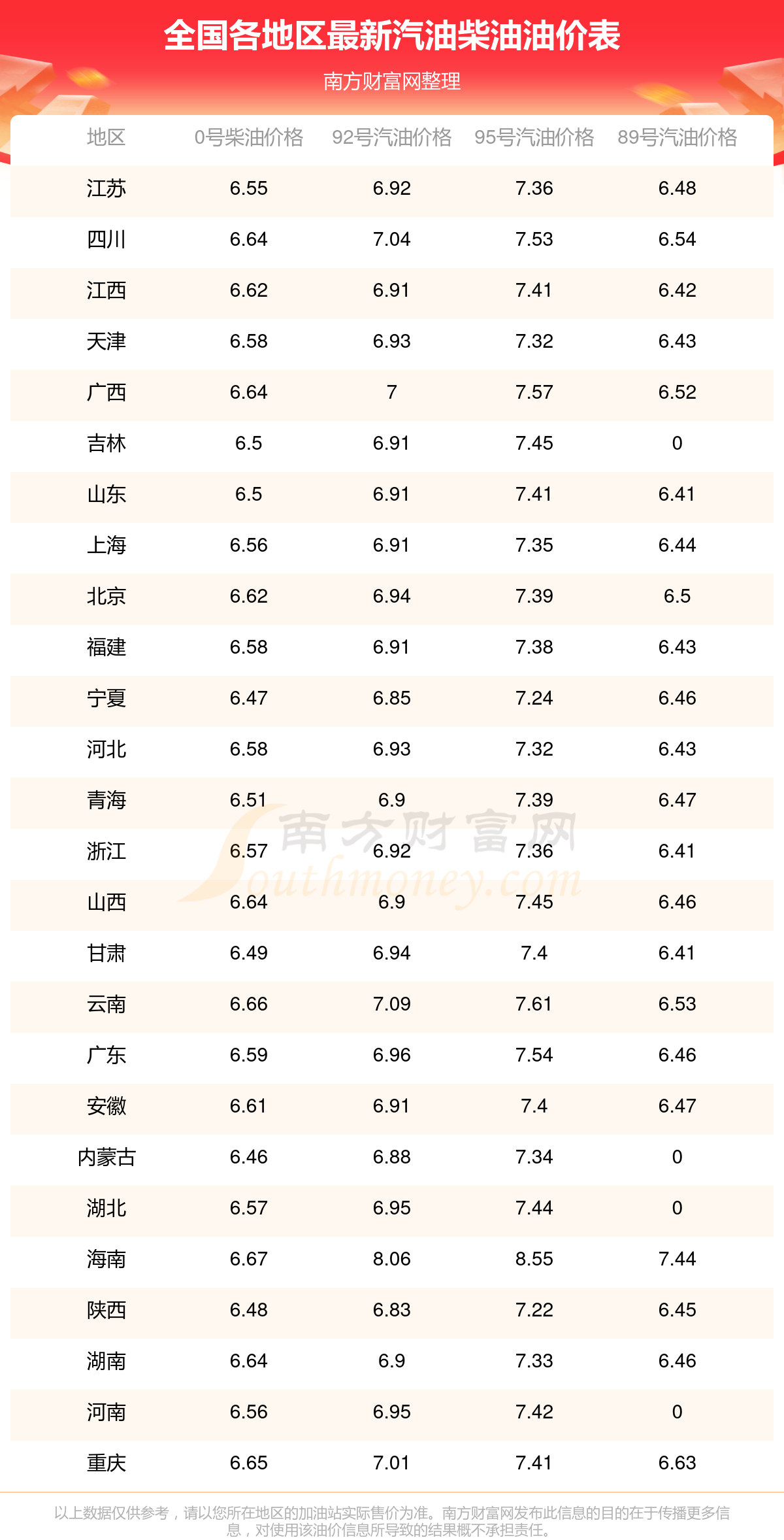 以上數(shù)據(jù)僅供參考,請以您所在地區(qū)的加油站實際售價為準(zhǔn)。南方財富網(wǎng)發(fā)布此信息的目的在于傳播更多信息,對使用該油價信息所導(dǎo)致的結(jié)果概不承擔(dān)責(zé)任。