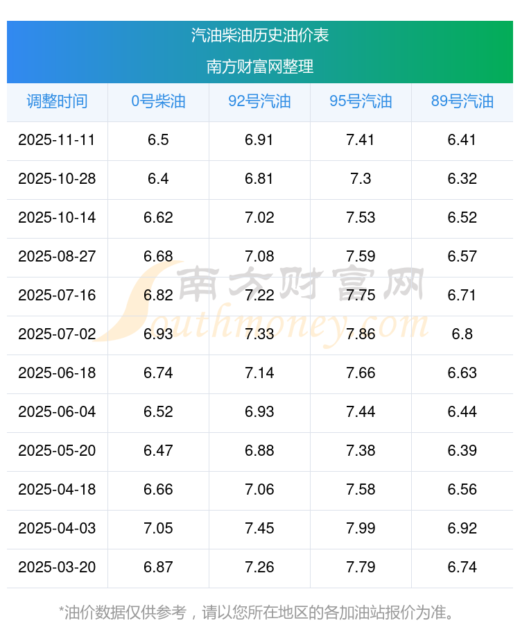 11月12日煙臺汽油、柴油價格是多少錢一升?11月11日油價調(diào)整后,每升油價為:92號汽油為6.91元,上漲了0.1元,上漲幅達1.47%;95號汽油為7.41元,上漲了0.11元,上漲幅達1.51%;89號汽油為6.41元,上漲了0.09元,上漲幅達1.42%;0號柴油為6.5元,上漲了0.1元,上漲幅達1.56%。下一輪油價調(diào)整時間11月24日24時,距離現(xiàn)在還有12.5天。