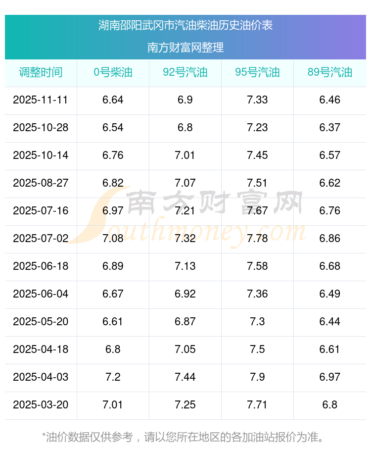 2025年湖南邵陽武岡市油價(jià)調(diào)整時(shí)間表