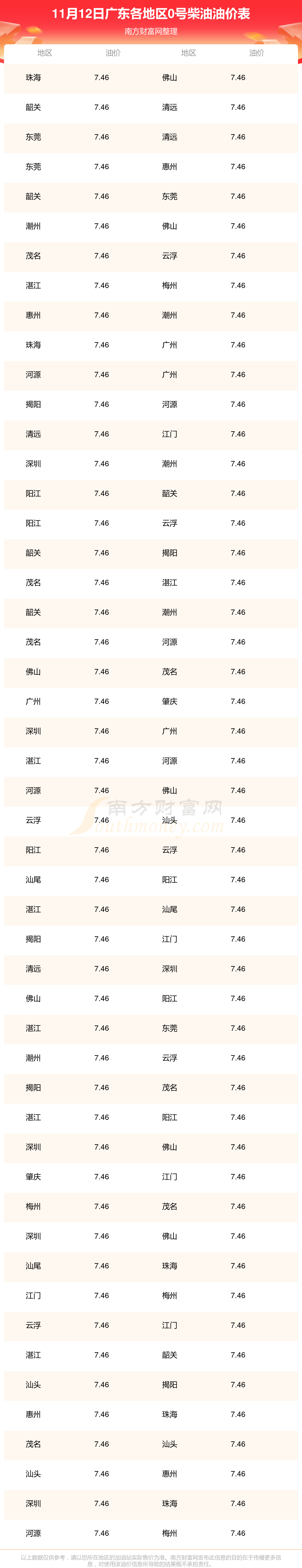2025年11月12日廣東0號(hào)柴油最新價(jià)格一覽表