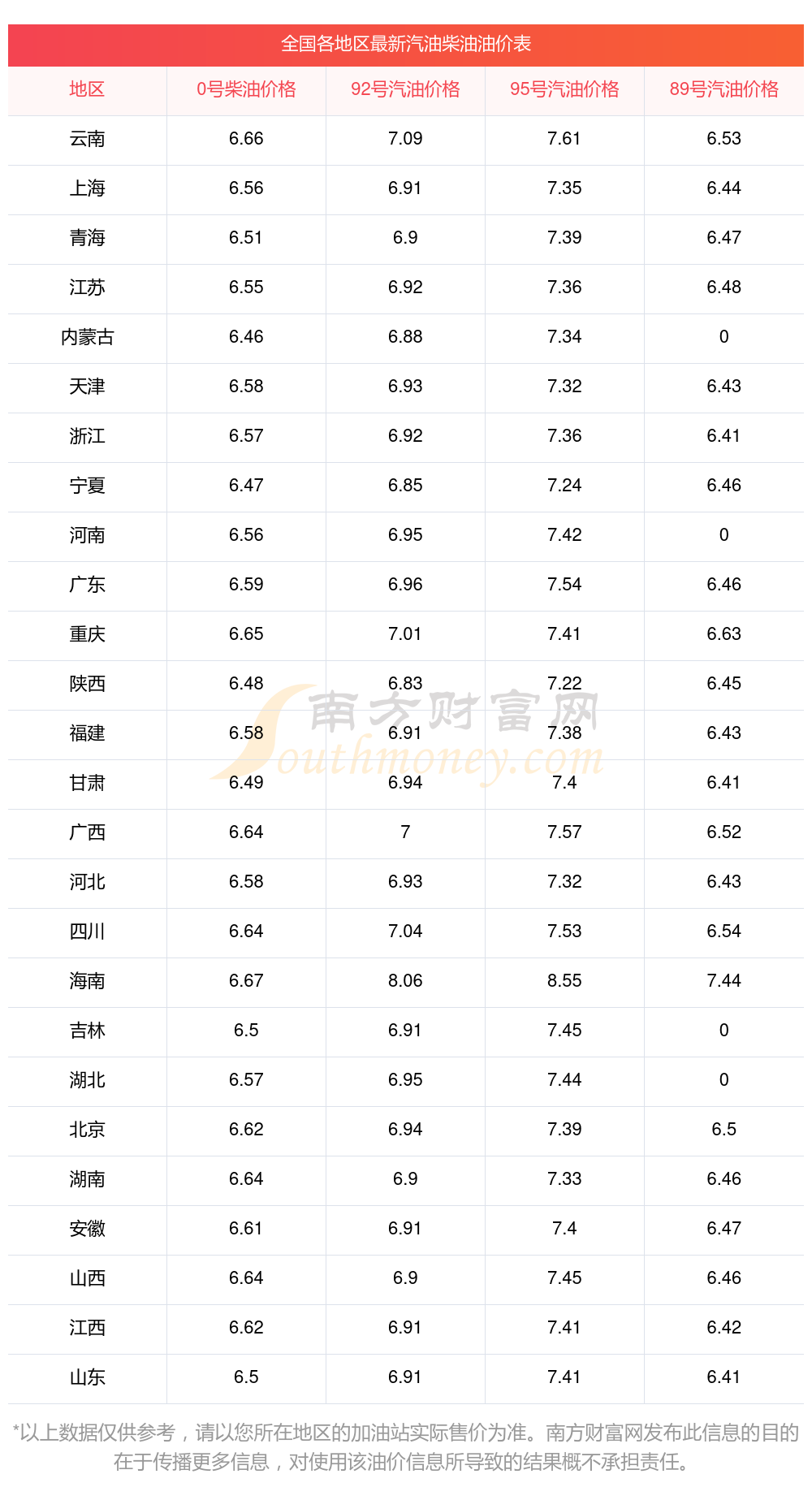 11月12日全國(guó)各地區(qū)汽油油價(jià)今日價(jià)格?