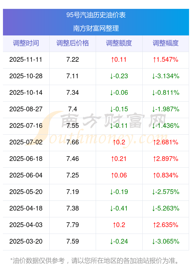油價調(diào)整最新消息:下一輪油價調(diào)整時間11月24日24時。11月12日陜西汽油、柴油每升的價格具體為:本輪油價調(diào)整時間為11月11日,92號汽油是6.83元,增了0.1元,增幅達1.49%;95號汽油是7.22元,增了0.11元,增幅達1.55%;89號汽油為6.45元,增了0.1元,增幅達1.58%;0號柴油為6.48元,增了0.1元,增幅達1.57%。