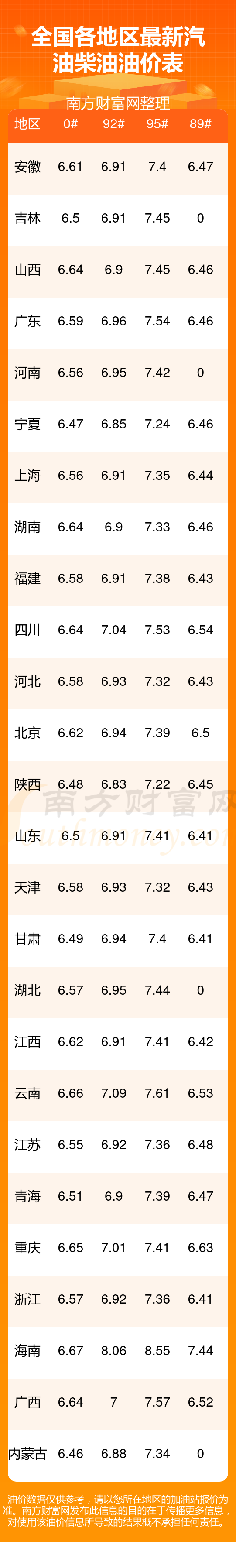 全國(guó)各地區(qū)2025年最新汽油價(jià)格表
