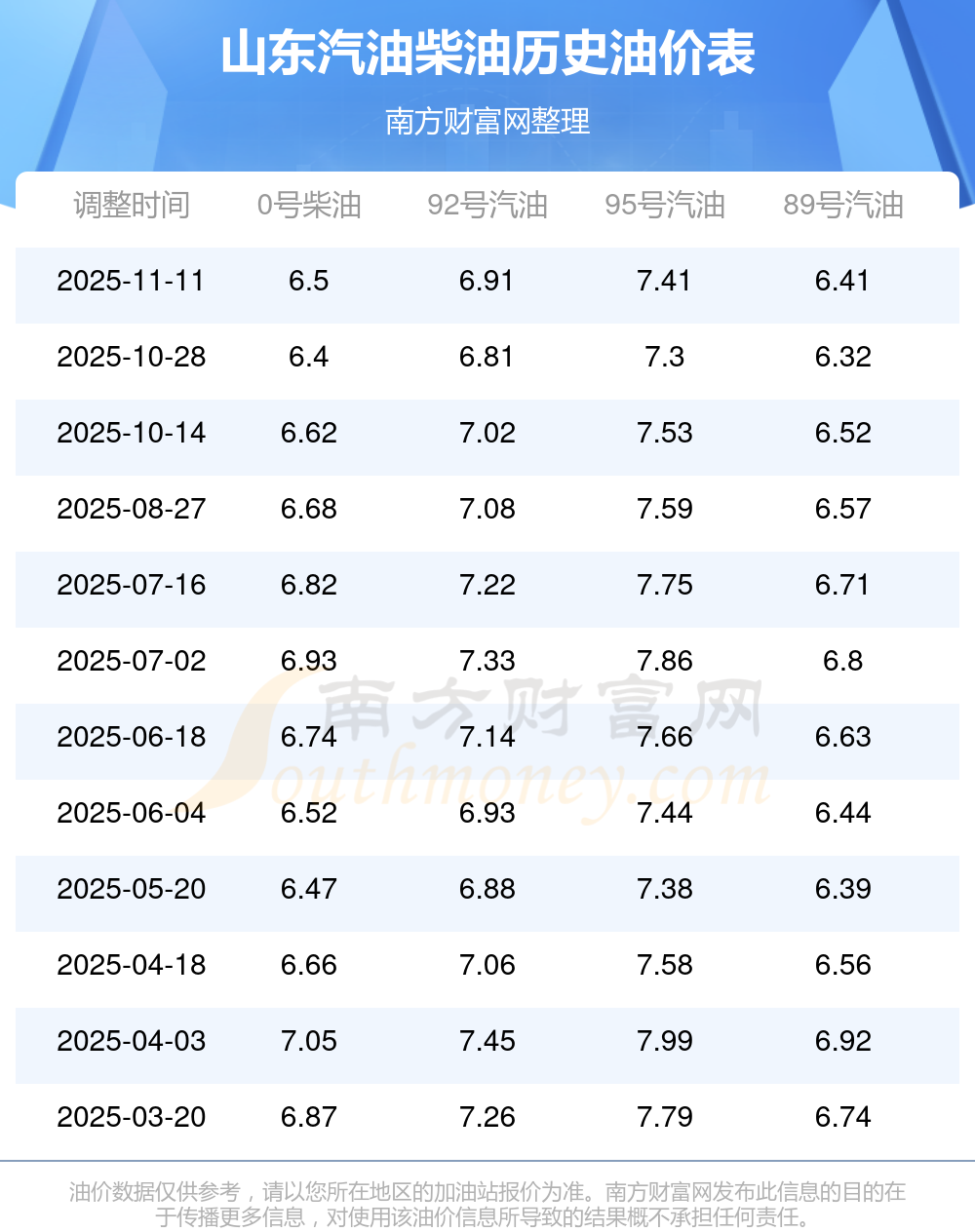 按照11月11日0號柴油最新調(diào)整價格6.5元/升來計算(以山東為例),該車型百公里平均油費為70.135元,按照上一輪10月28日調(diào)整價格6.4元/升來計算,百公里平均油費為69.056元,對比上一輪多花1.079元,下一輪油價調(diào)整時間為11月24日24時。