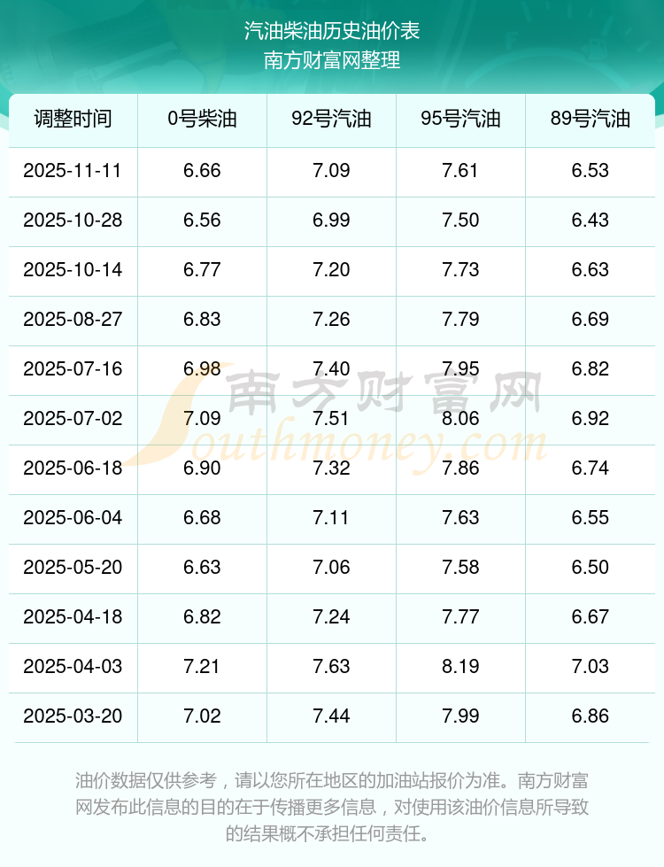 11月油價(jià)調(diào)整時(shí)間:11月10日、11月24日