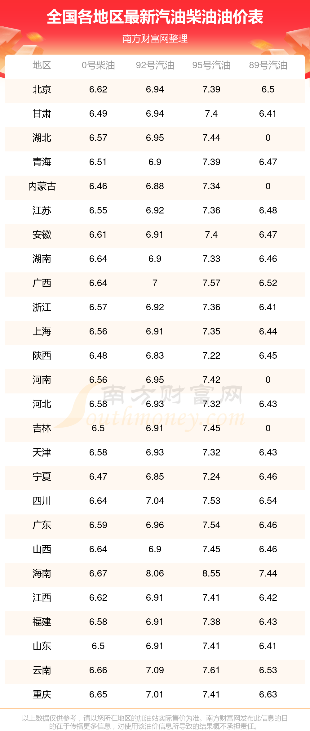 附:最新全國汽油、柴油價(jià)格一覽表