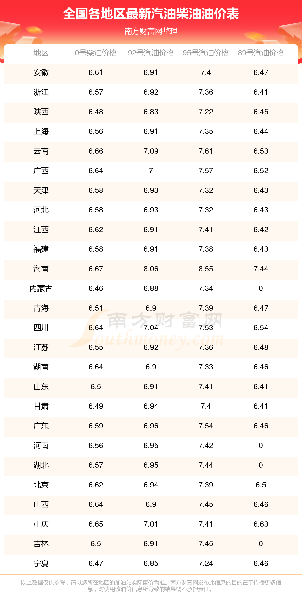 油價數(shù)據(jù)僅供參考,請以您所在地區(qū)的各加油站報價為準。