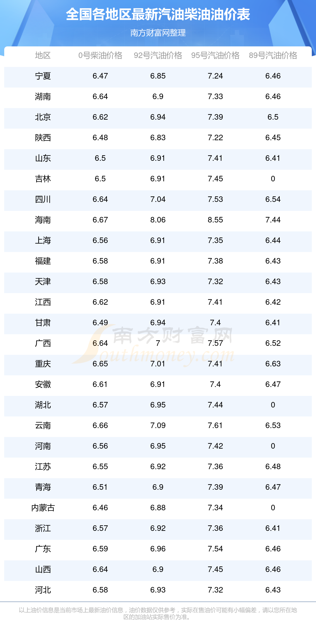 2025年11月12日全國油價調(diào)整及最新汽油價格表