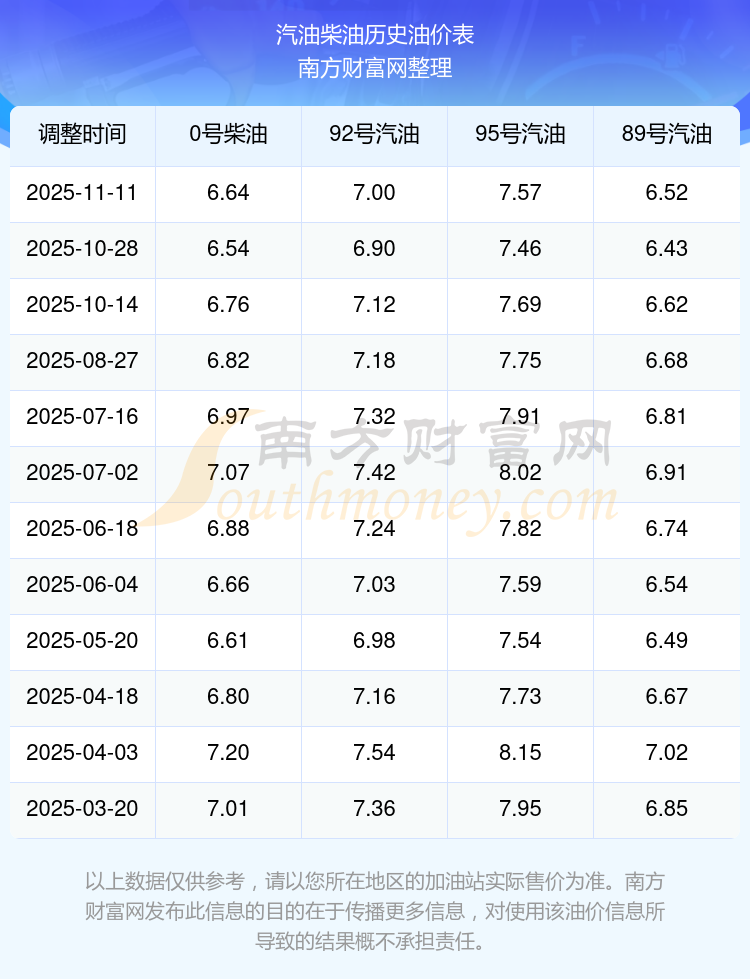 2025年汽油柴油油價(jià)調(diào)整一覽表