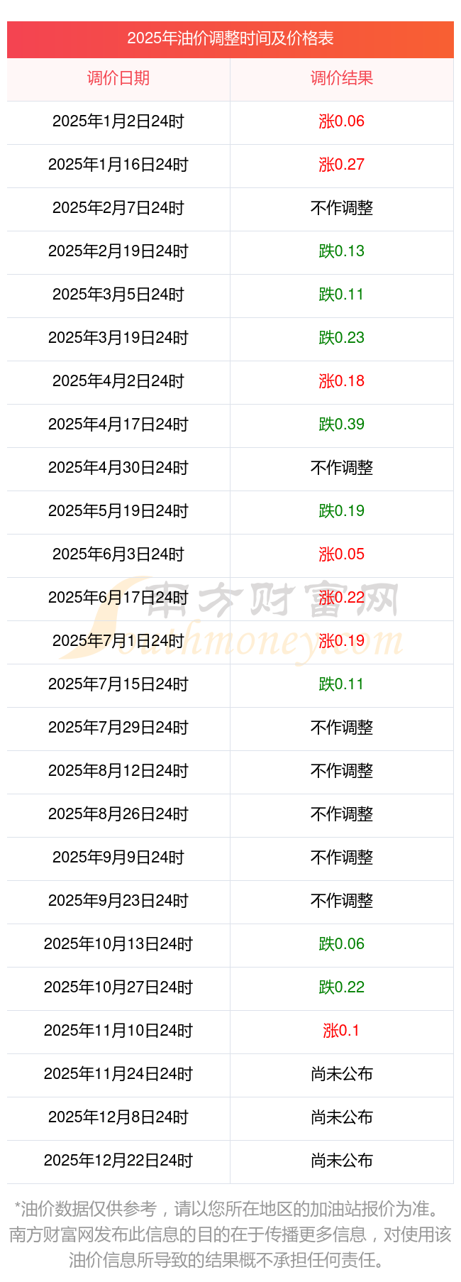 2025年11月12日全國油價調(diào)整時間及價格一覽表