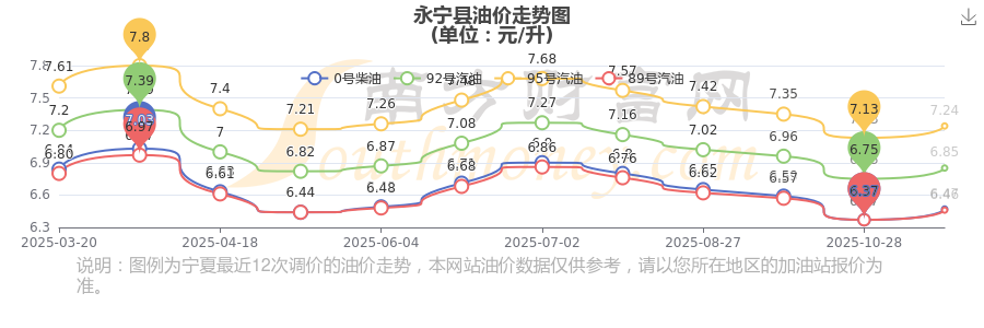 永寧縣11月12日0號(hào)柴油歷史油價(jià)調(diào)整走勢圖
