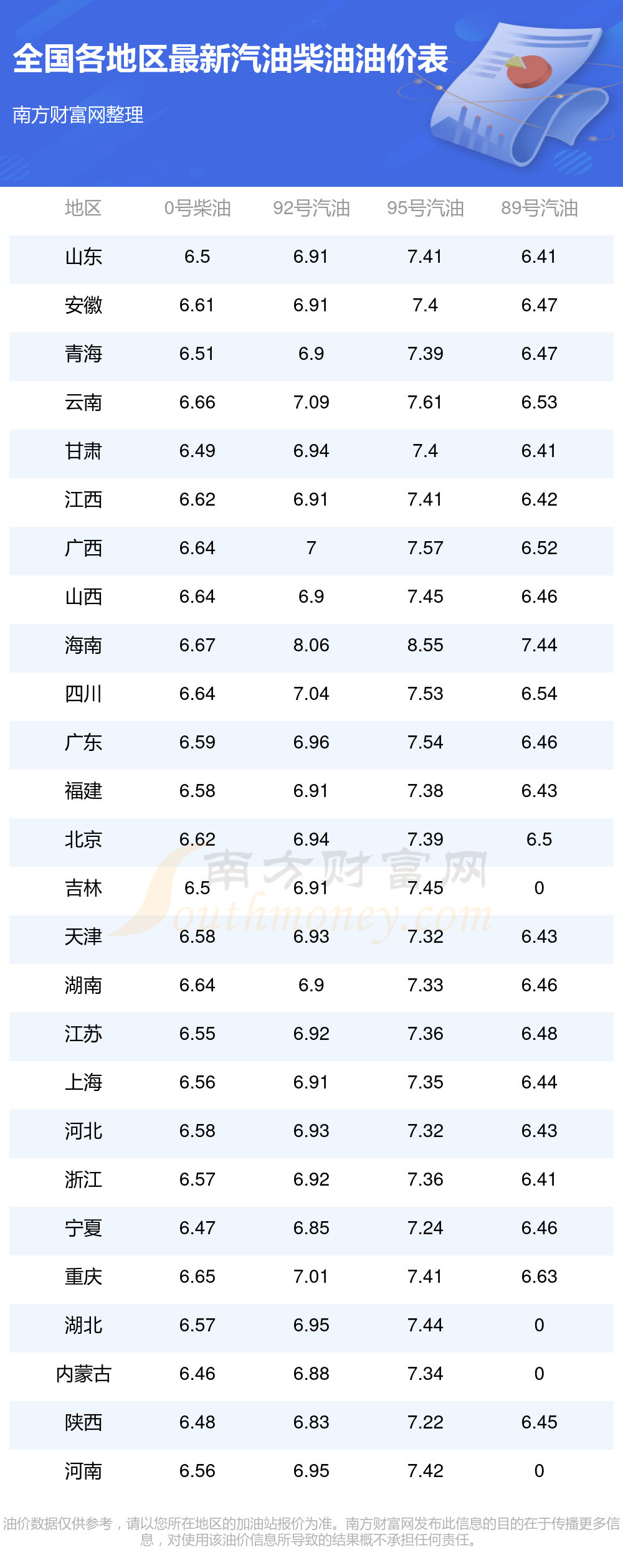 2025年11月12日全國各地油價調(diào)整及最新汽油價格表